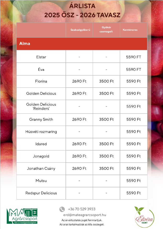 Akár hobbikertész, akár vérbeli gyümölcsgazda vagy, gyümölcsoltvány kínálatunkban mindenképpen találsz olyan fajt, amely illeszkedik vásárlóid vagy családod igényeihez, illetve telked talajminőségéhez, éghajlatához. Ha vannak további kérdéseid, érddeklődj elérhetőségeinken!
